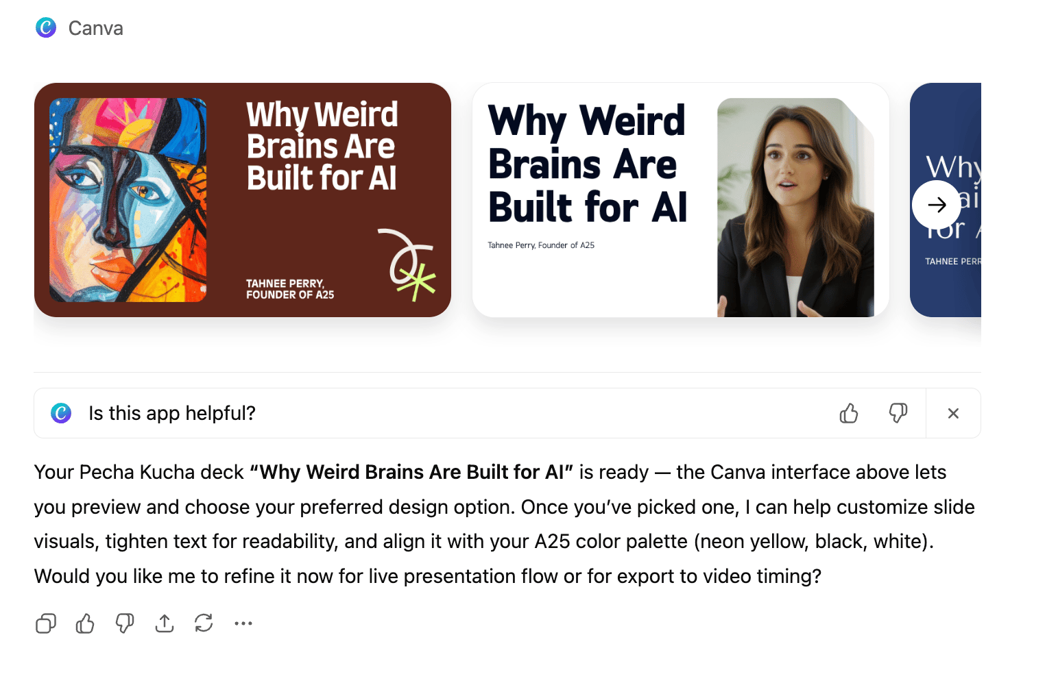 I tested it out on Canva by asking it to turn an outline into a presentation and while it produced a decent first draft with images, layouts, and titles, it wasn’t a magic bullet: I still needed to replace several images, adjust layouts, and rewrite some text to get it presentation-ready.